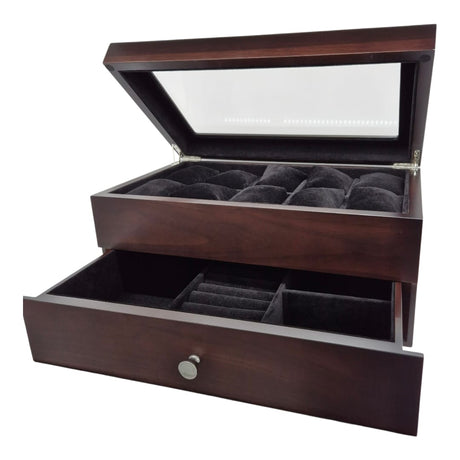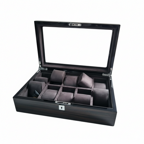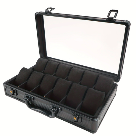 KS-006 Maleta de relojes con 12 espacios con vidrio frontal