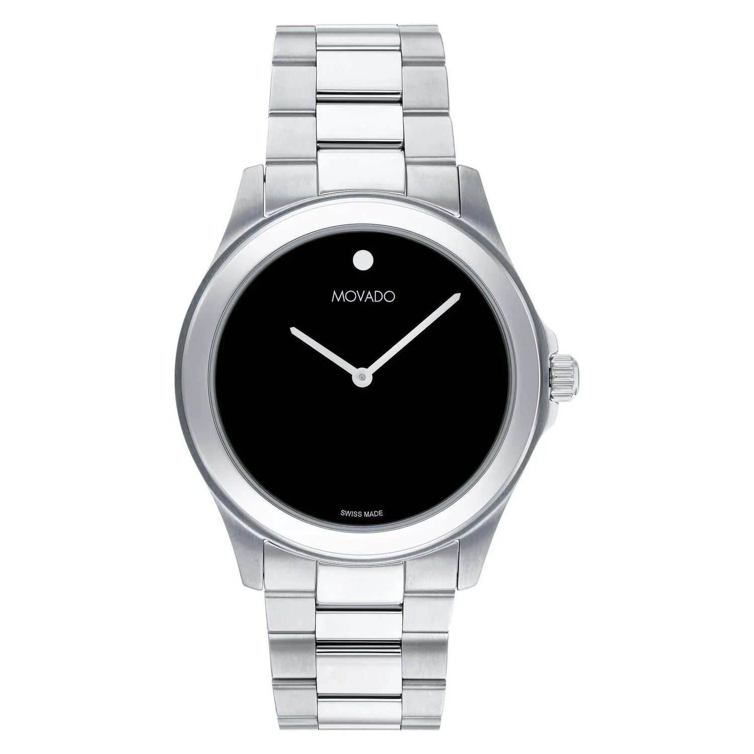Un diseño deportivo minimalista con esencia contemporánea. El Movado Challenger combina una caja compacta de acero inoxidable con el icónico dial Museum en negro, cristal de zafiro y un brazalete metálico refinado. Una pieza moderna, elegante y fiel al ADN de Movado.