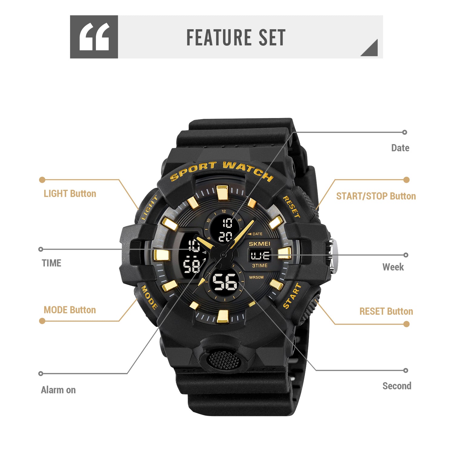 • Fecha, Semana, Luz LED, Reloj de 12/24 horas,