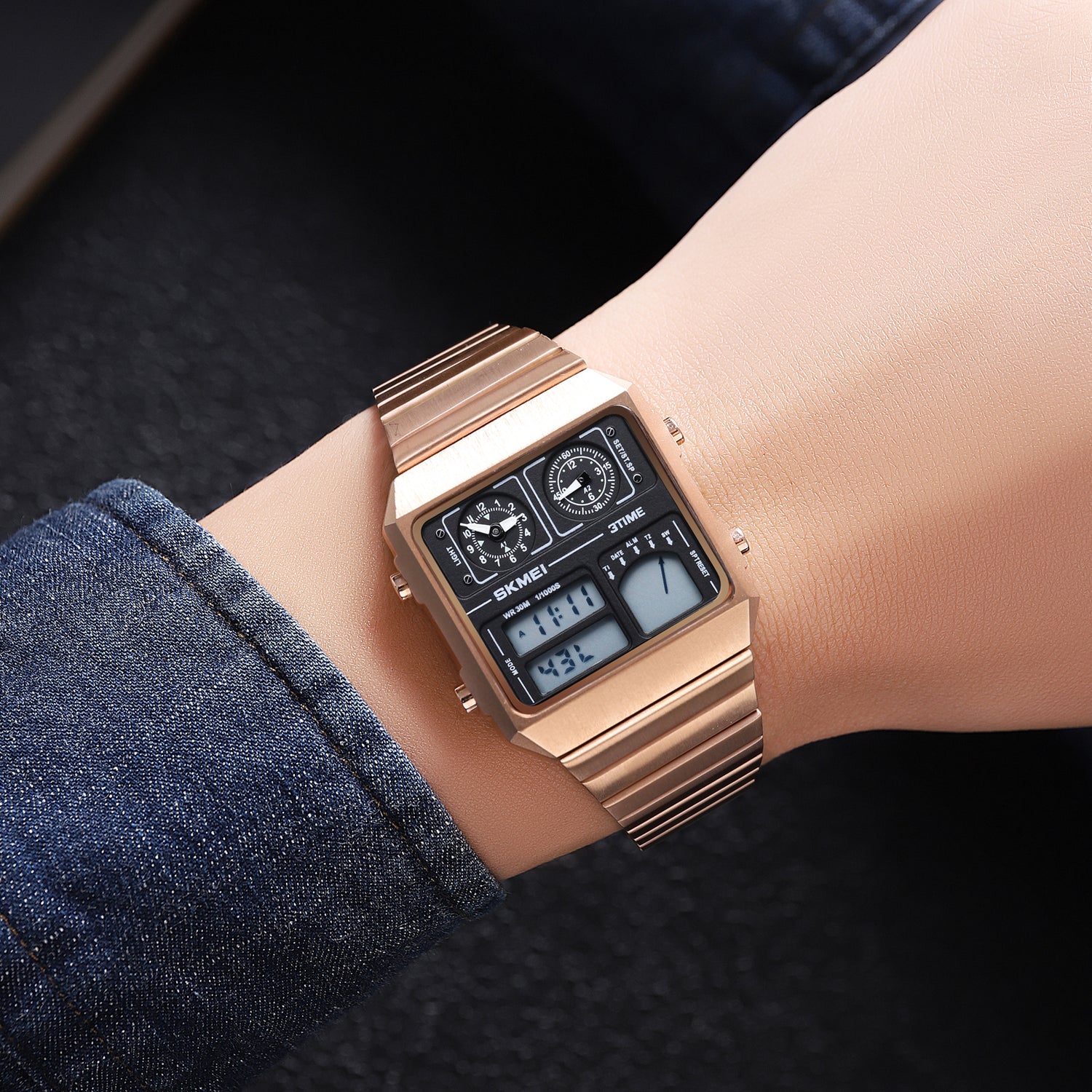 2198 Reloj Skmei para caballero doble hora pulsera de metal