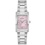 - Dial: Madreperla rosa iridiscente, con 8 marcadores de hora de diamante y números romanos y manos de tono plateado