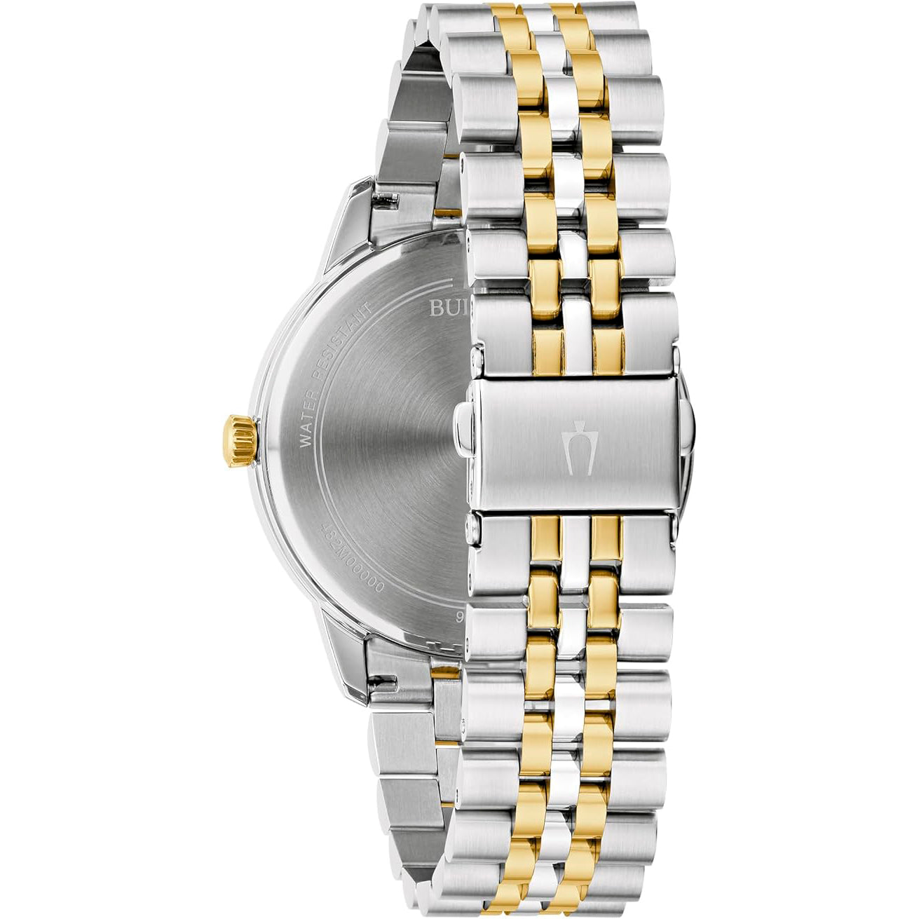 • Descripción: Elegancia atemporal con un toque de lujo. Este reloj Bulova de la colección Men’s Classic Dress combina un diseño de acero inoxidable en dos tonos con detalles refinados. Su esfera azul con acentos dorados y marcadores de diamante brinda una apariencia sofisticada y moderna. Equipado con movimiento de cuarzo japonés de alta precisión, calendario de fecha y resistencia al agua, es la opción ideal para el hombre que busca distinción y estilo en cualquier ocasión.