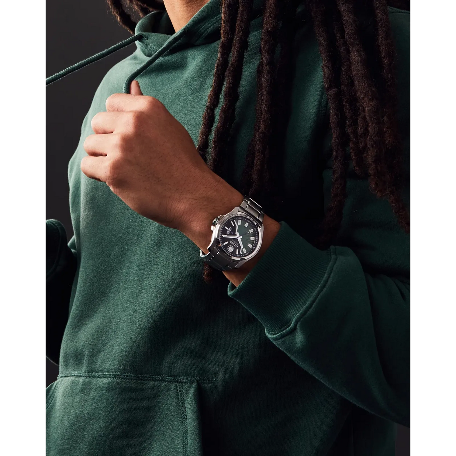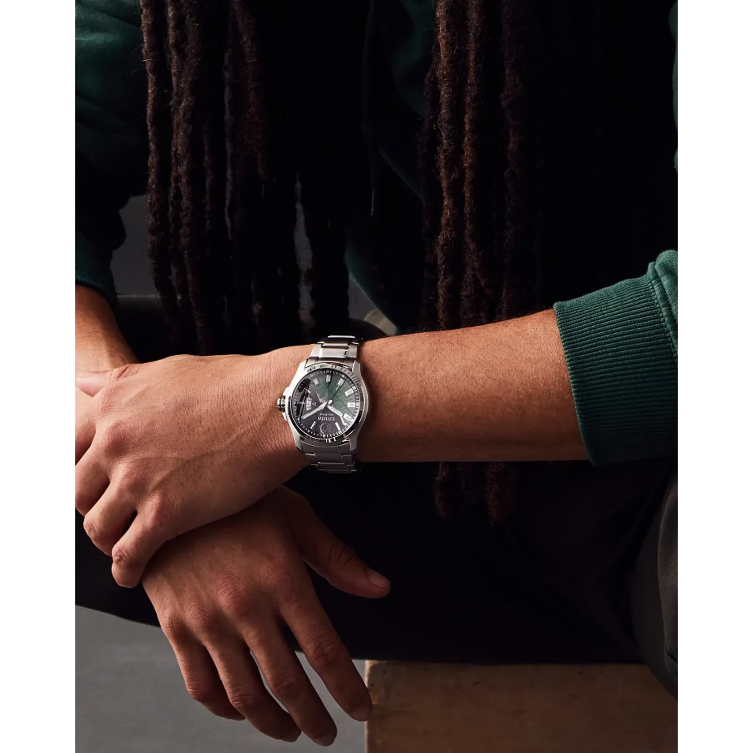 • Esfera: Negra con acentos verdes, manecillas y marcadores luminiscentes