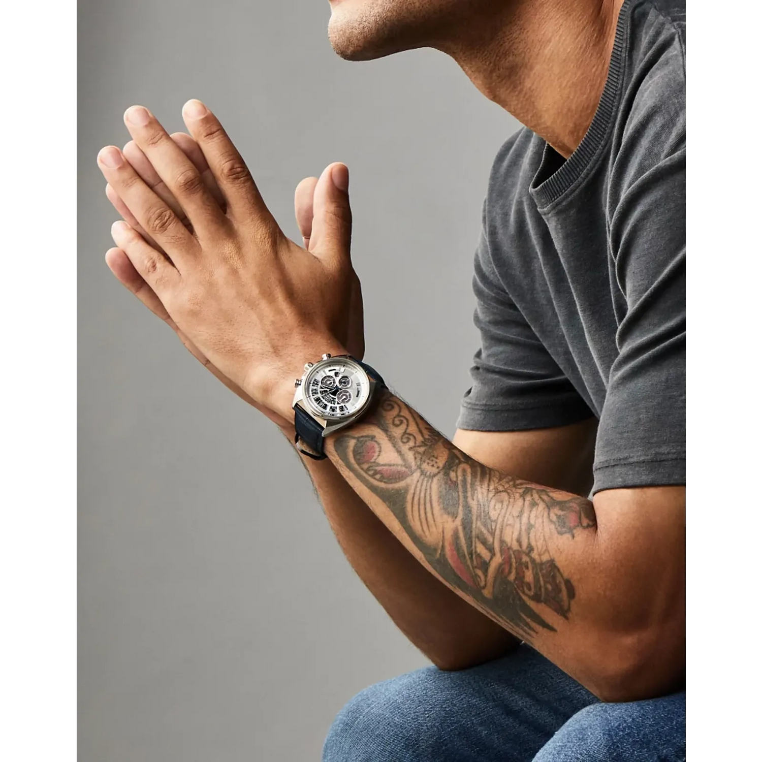 • Esfera: Plateada con subesferas de cronógrafo