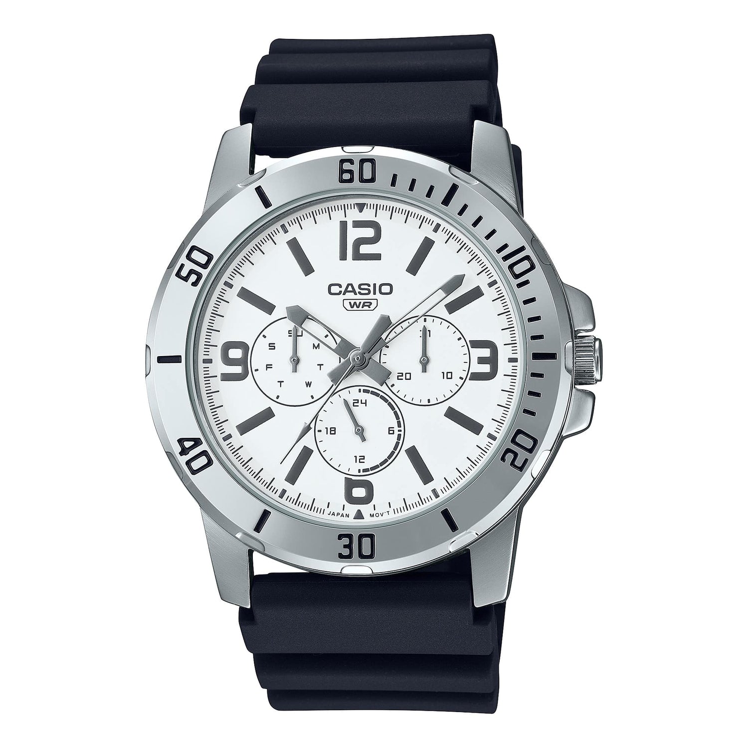 Cronometraje regular: Analógico: 3 manecillas (hora, minuto, segundo), 3 diales (fecha, día, 24 horas)