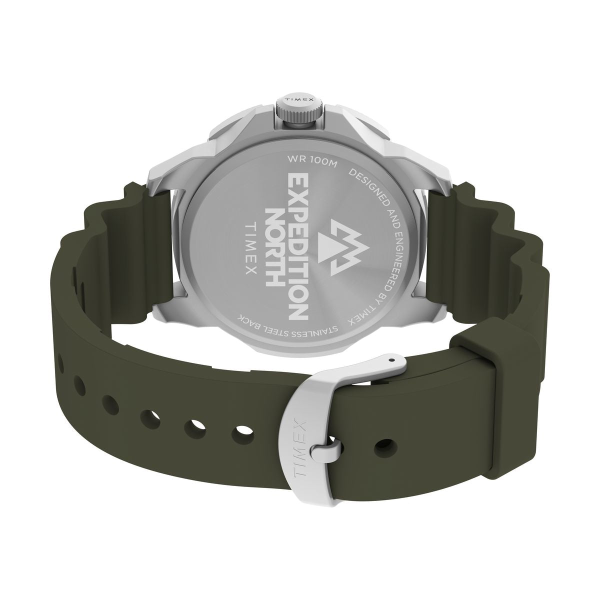 • Descripción: Expedition North® Ridge con caja metálica plateada IP, esfera verde y correa de silicona verde