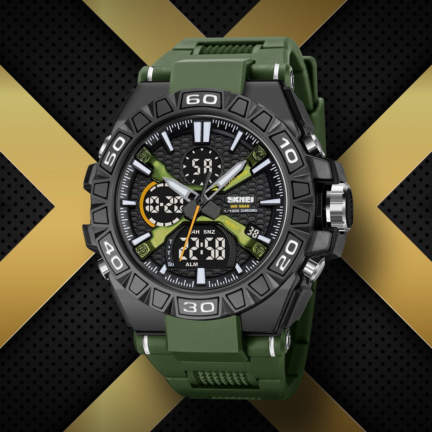 • Función: 3 horas, cronógrafo, alarma, fecha, semana, luz LED, reloj de 12/24 horas