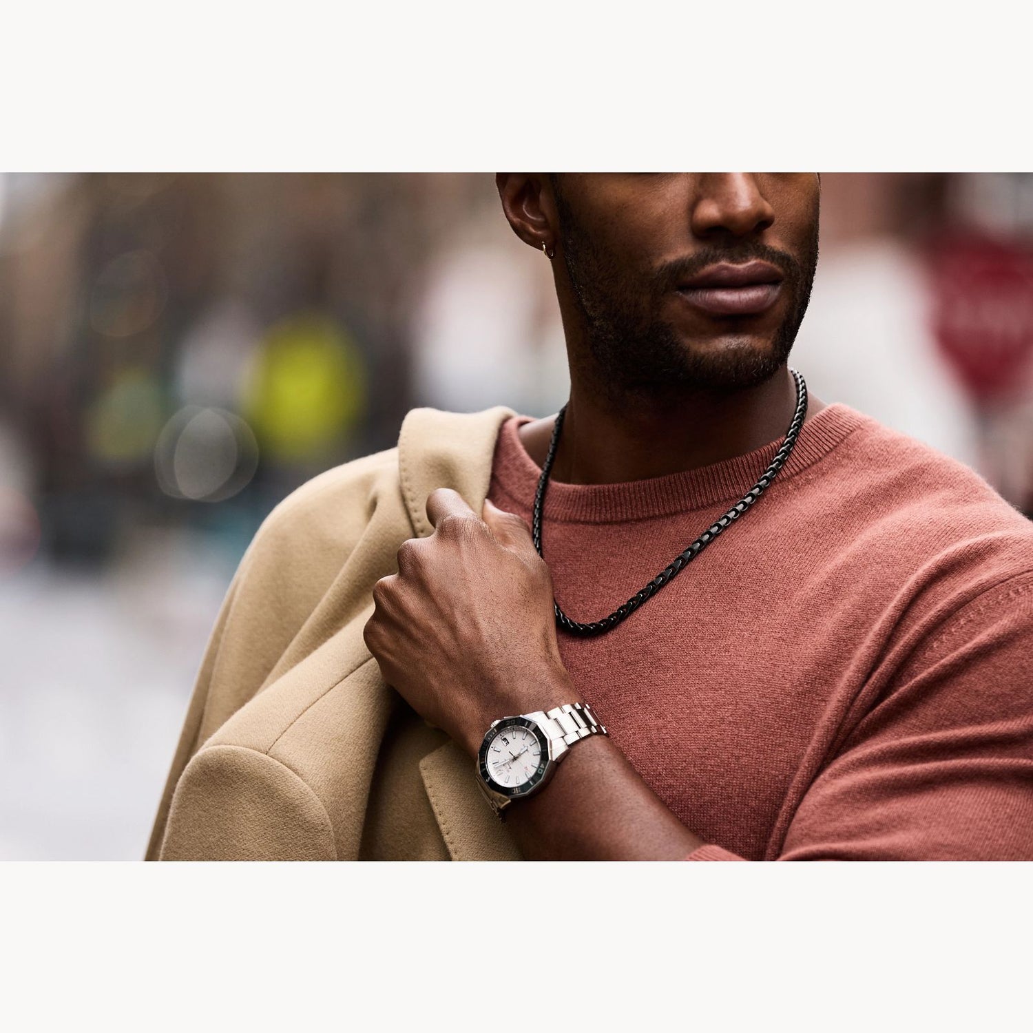 • Detalles plateados con manecillas e indicadores luminiscentes