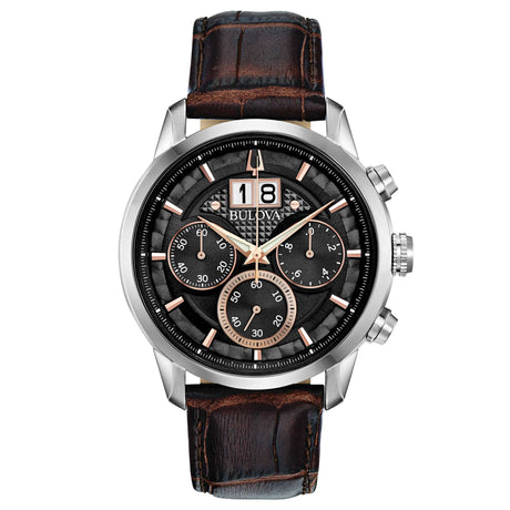 96B311 Reloj Bulova Sutton Big Date de caballero banda de cuero 44 mm