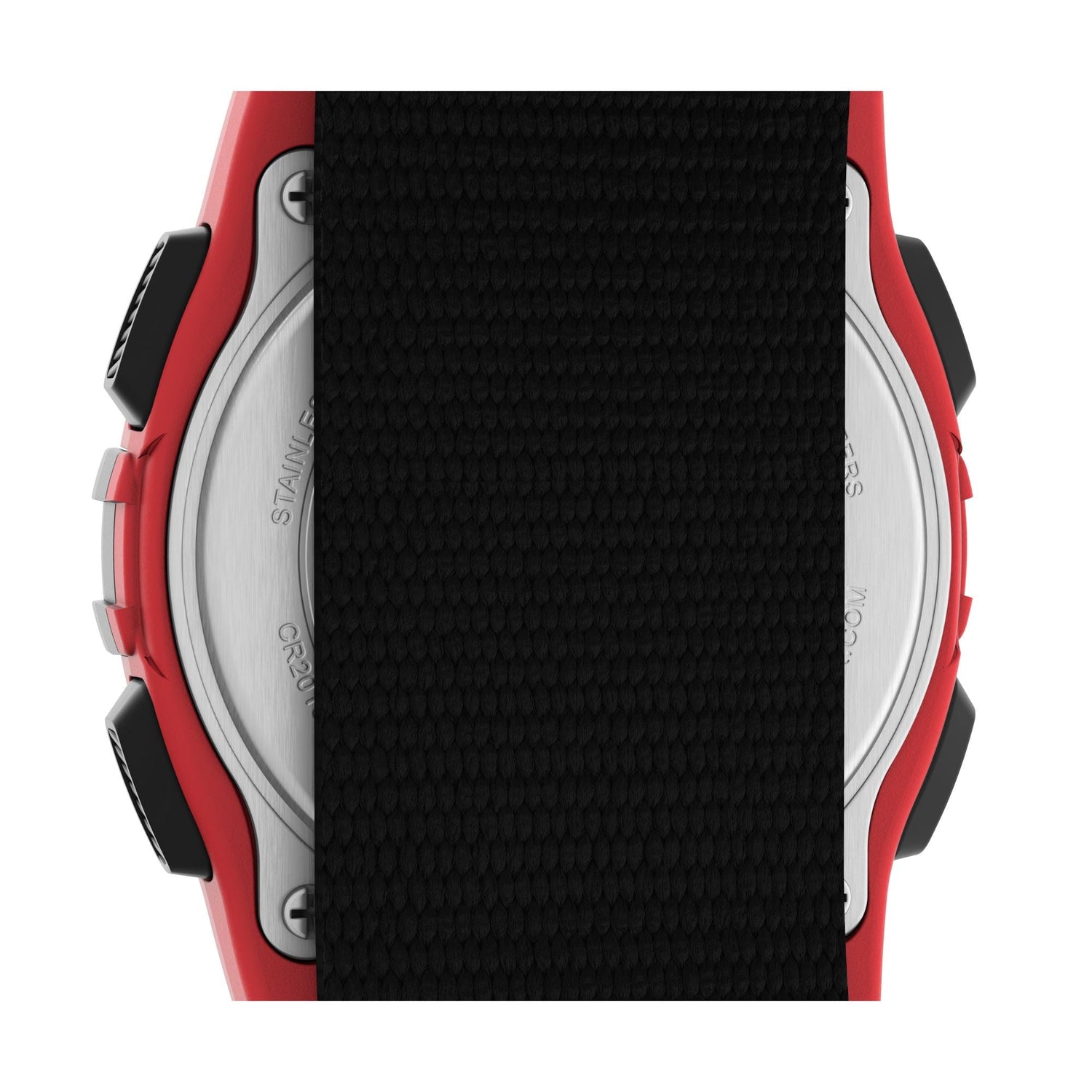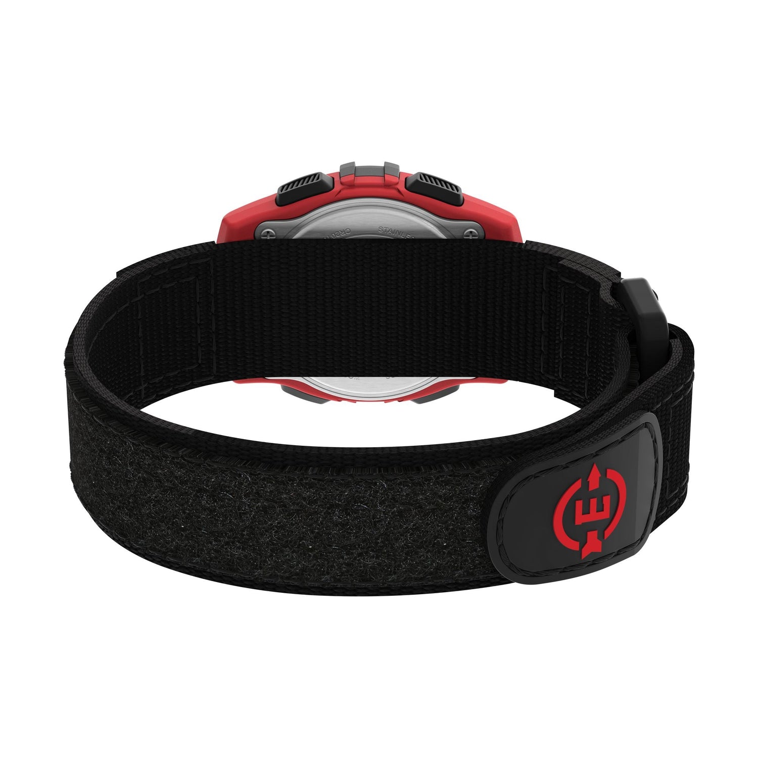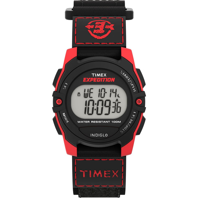 • Descripción: Reloj Timex Expedition® CAT de tamaño mediano con caja de resina roja y bisel negro, correa Fastwrap® de nailon negro con cierre de velcro, pantalla digital con funciones de cronógrafo, alarma y temporizador, e iluminación Indiglo®; resistencia al agua de 100 metros.