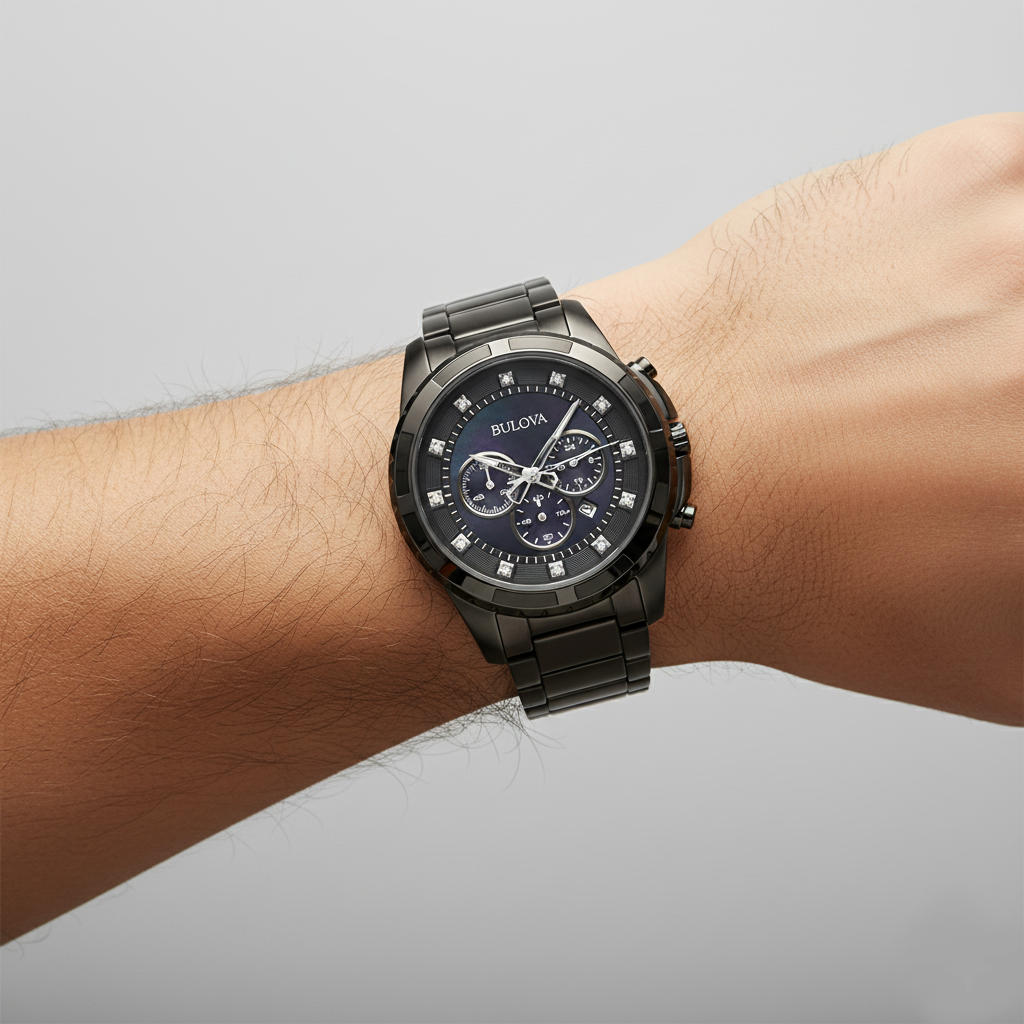 • Color de la esfera: Negro madreperla con 12 diamantes