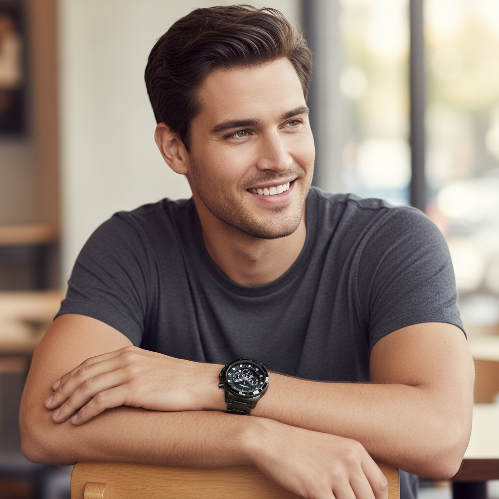 • Material de la caja: 100% acero inoxidable con resina negra y recubrimiento IP negro