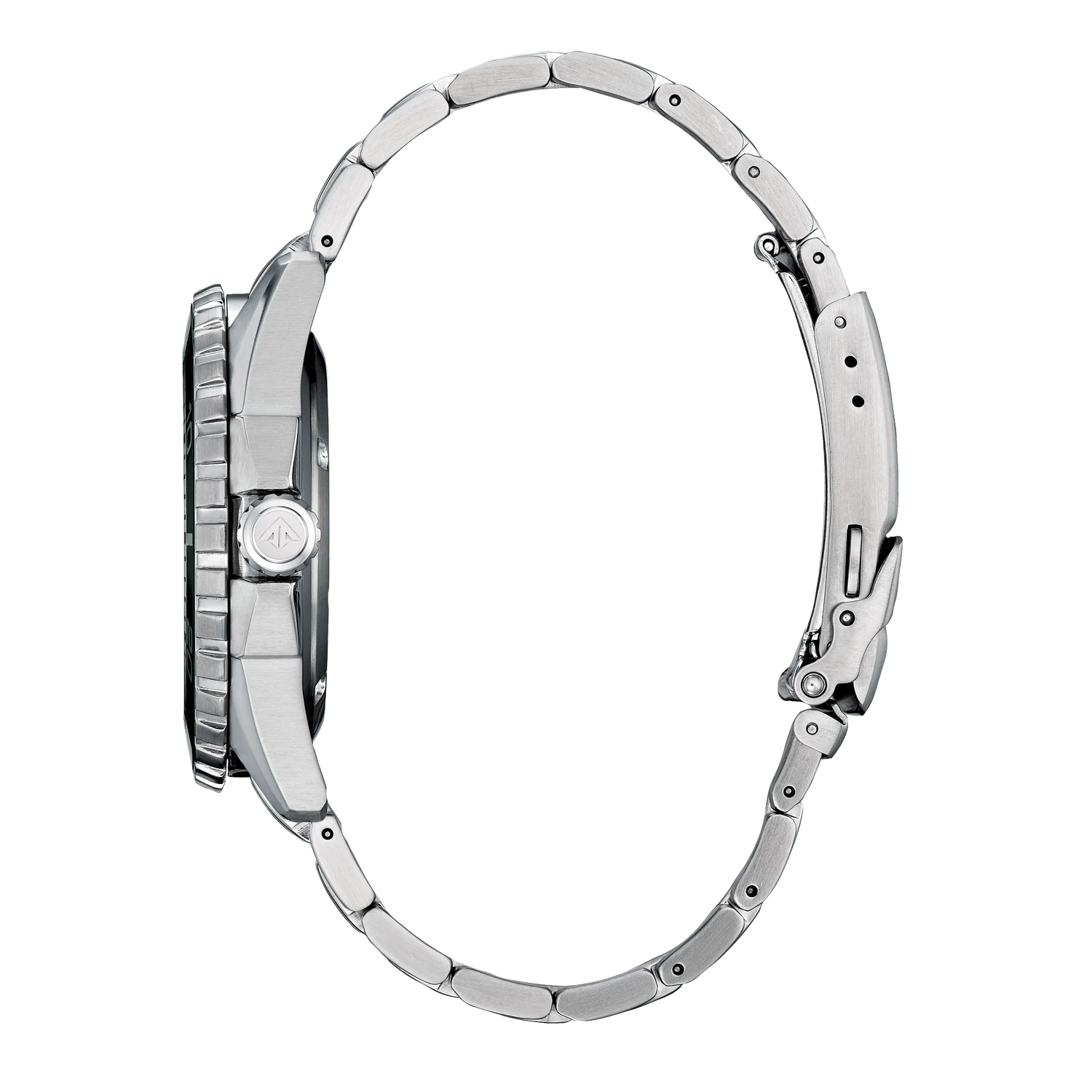 • Características especiales: Bisel unidireccional con inserto verde, corona atornillada para mayor seguridad, diseño robusto apto para buceo