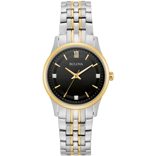 Reloj Bulova Classic Bicolor con Esfera Negra para Mujer
