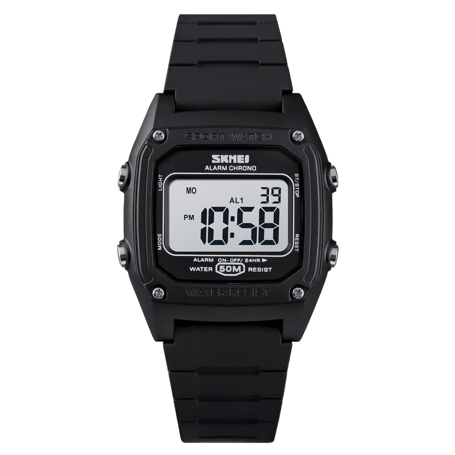 - FUNCIÓN: Hora, Crono, Alarma, Fecha, Semana, Luz EL, Reloj de 12/24 horas.