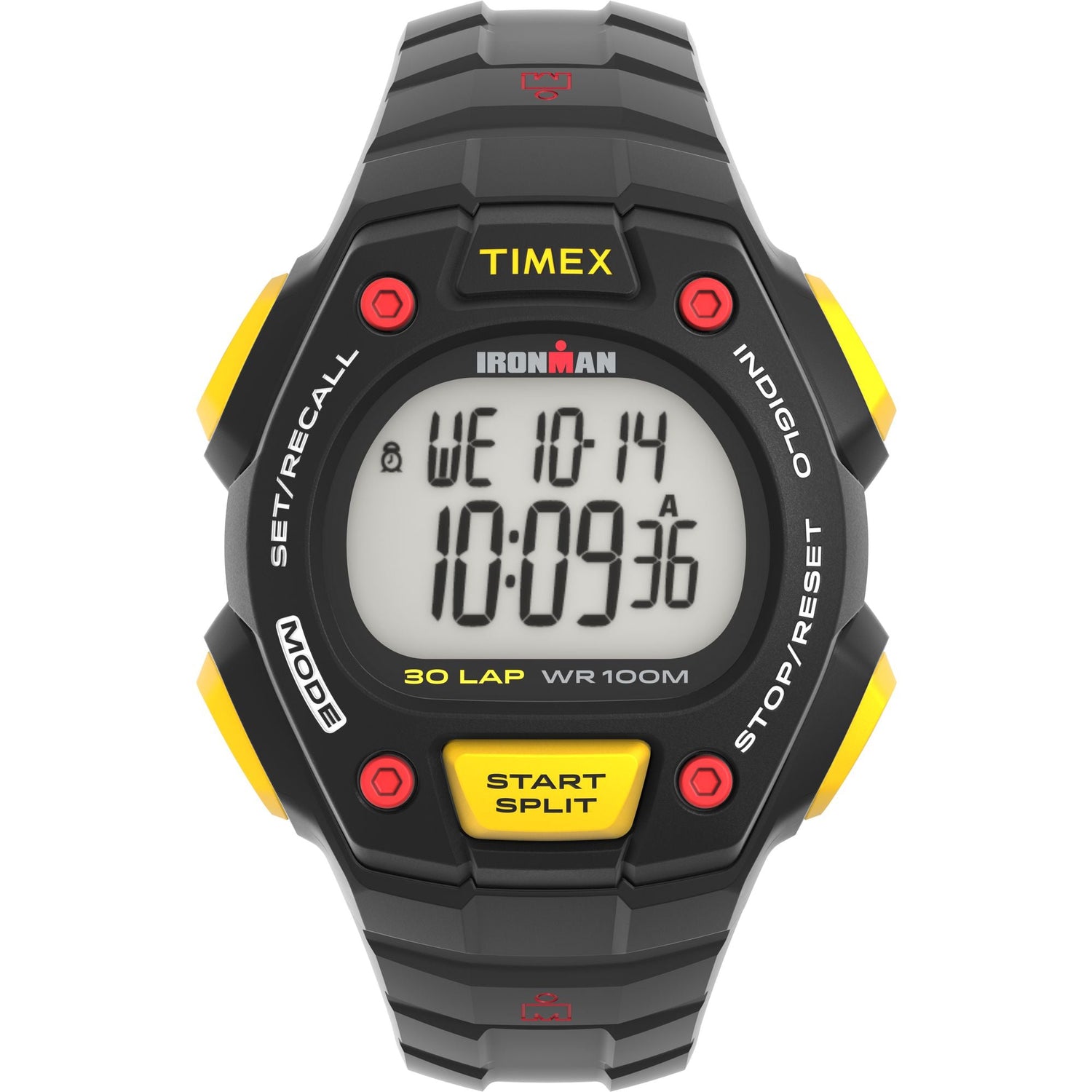 • Descripción: Reloj digital Ironman Classic 30 con caja de resina negra con detalles amarillos de 40mm, correa de resina negra, esfera digital con acentos rojos y amarillos, e iluminación Indiglo®.