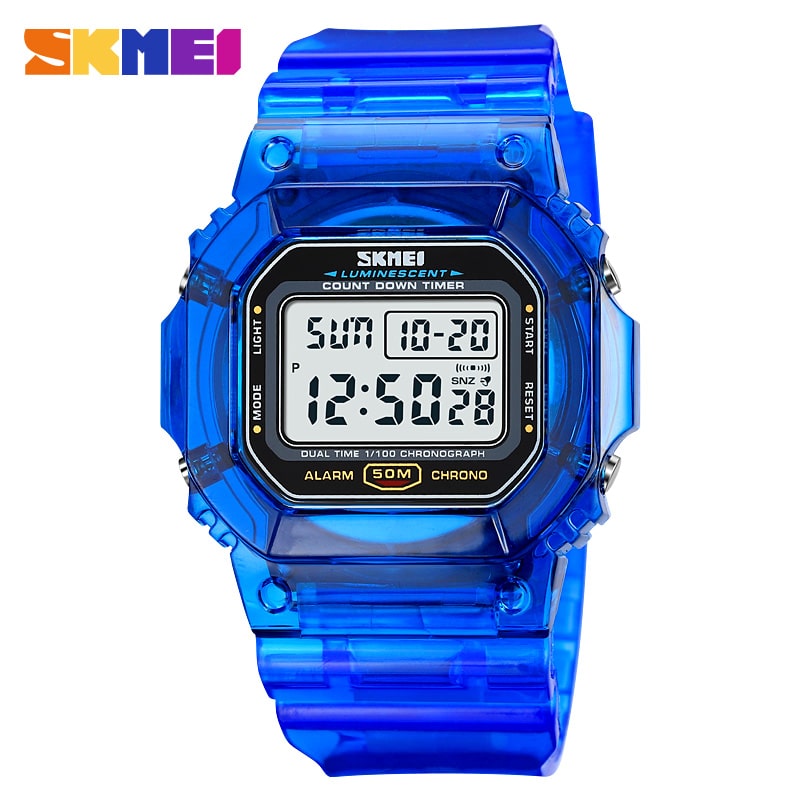 -Funciones: 2 Horas, Cronómetro, Alarma, Fecha, Semana, Luz, Formato de hora 12/24 hrs, Temporizador