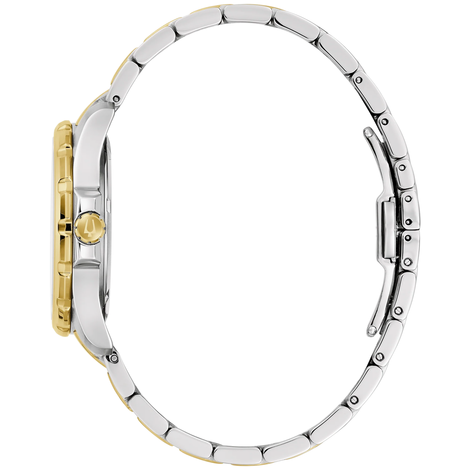 El Bulova 98P227 es un reloj femenino de diseño elegante y moderno, con acabado bicolor y detalles de diamante que realzan su sofisticación. Su cristal de zafiro antirreflejante, junto con su resistencia al agua de 100 metros, lo convierten en una pieza refinada y a la vez funcional para el uso diario o formal.