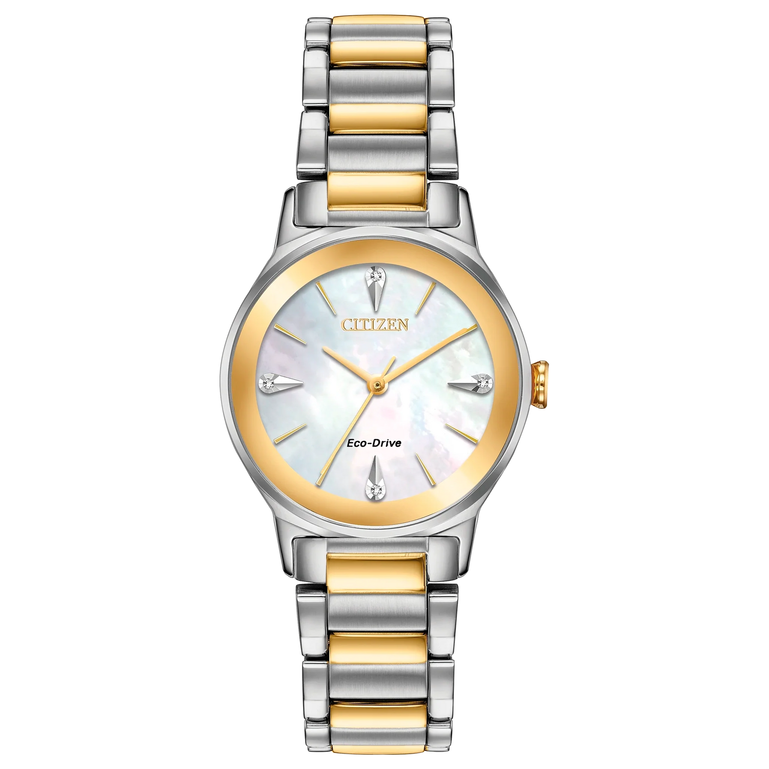 Reloj Citizen Axiom para dama con un diseño moderno, minimalista y elegante. Su estética de dos tonos, carátula de nácar y cristal edge-to-edge crean una pieza sofisticada que combina con cualquier estilo de día o de noche. Funciona con tecnología Eco-Drive, alimentado por cualquier fuente de luz.