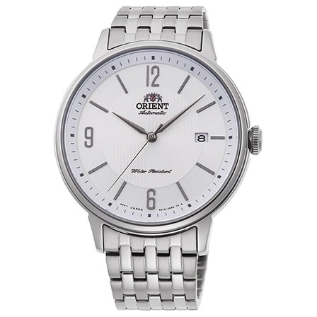 • Este modelo incluye el fiable y preciso movimiento automático de fabricación propia de ORIENT, que se puede admirar a través del fondo transparente de la caja. El diseño general presenta un bisel fino, una carátula ancha y lados cónicos en la caja, para un perfil delgado en la muñeca. Estas sutiles características de diseño contribuyen a una apariencia limpia, simple y refinada. Y este modelo tiene una pantalla de hora de tres manecillas, una ventana de fecha y una carátula ancha y muy legible. El diseño limpio y nítido los hace ideales para el uso diario.