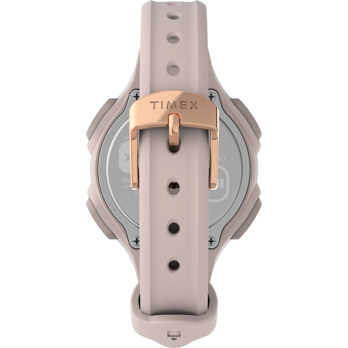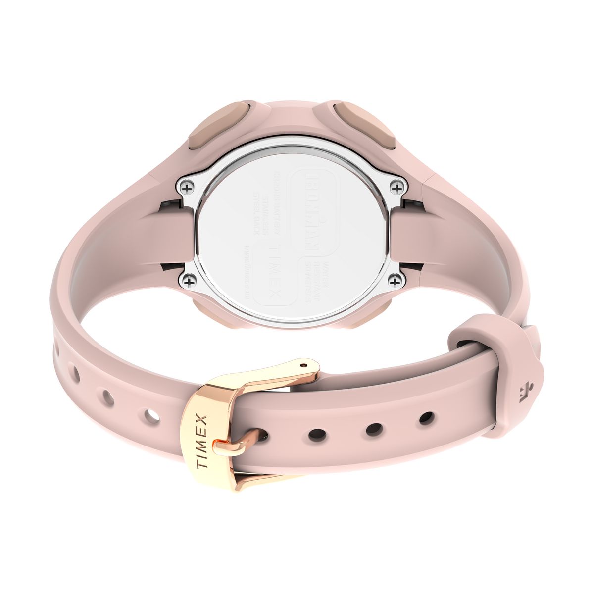 • Descripción: Timex Ironman Essential 30 Luxe digital con caja ovalada rosa, aro superior en tono oro rosado y correa de PU rosa