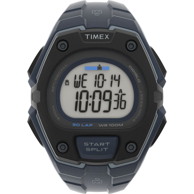 • Descripción: Reloj digital TIMEX IRONMAN Classic 30 Oversized con caja azul de resina y correa a juego, diseñado para deportes y uso intensivo.