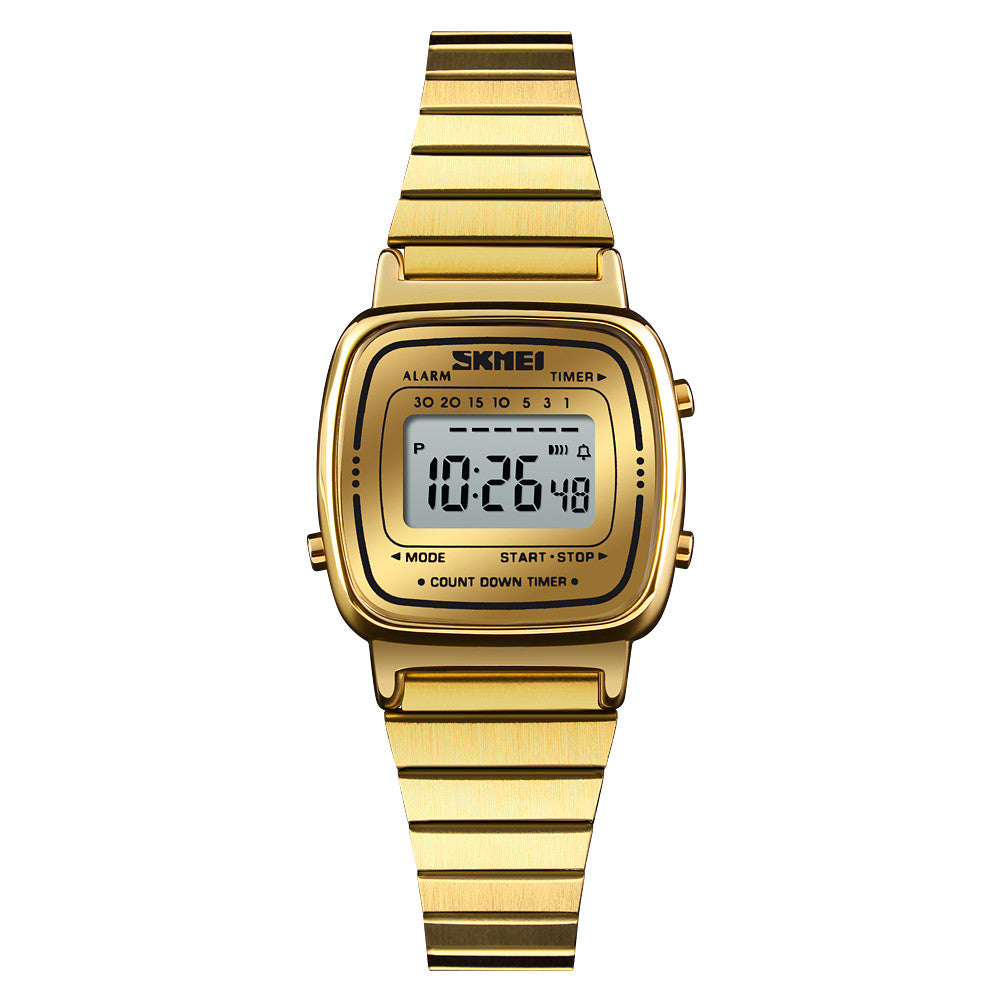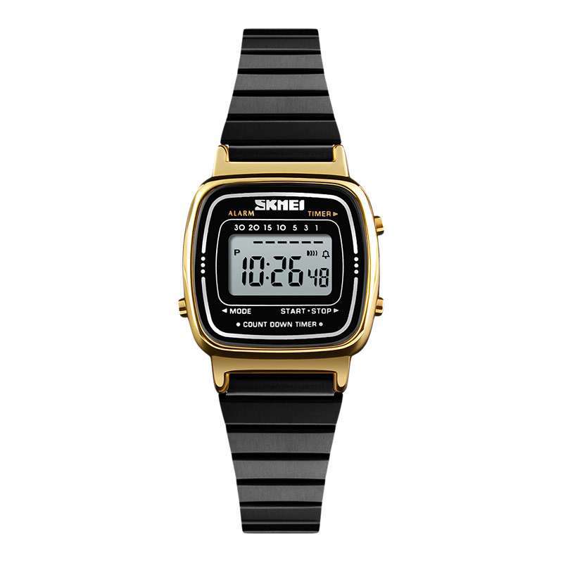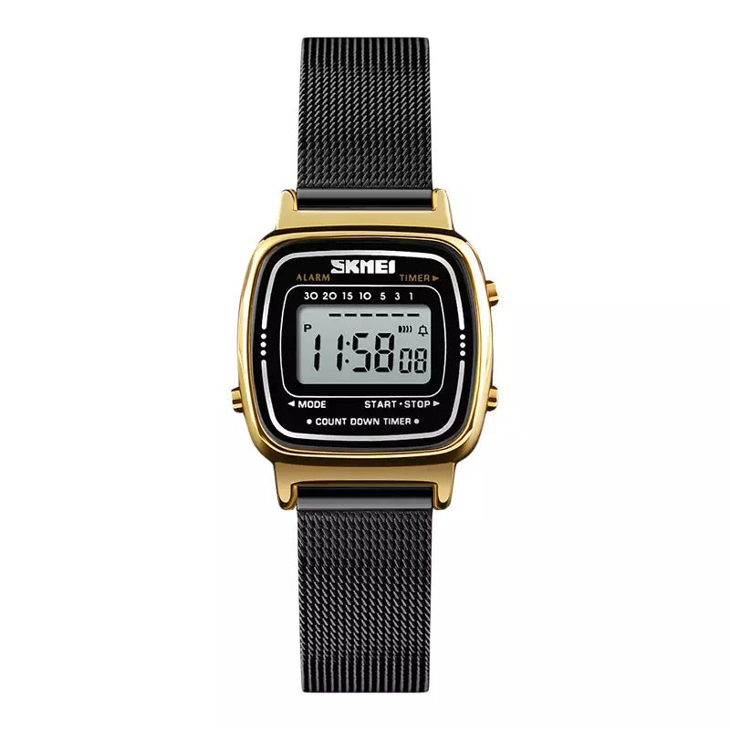 • Funciones: Hora, cronómetro, visualización de la fecha, alarma del temporizador, visualización del día de la semana, timbre horario, formato de 12/24 horas, cuenta atrás.