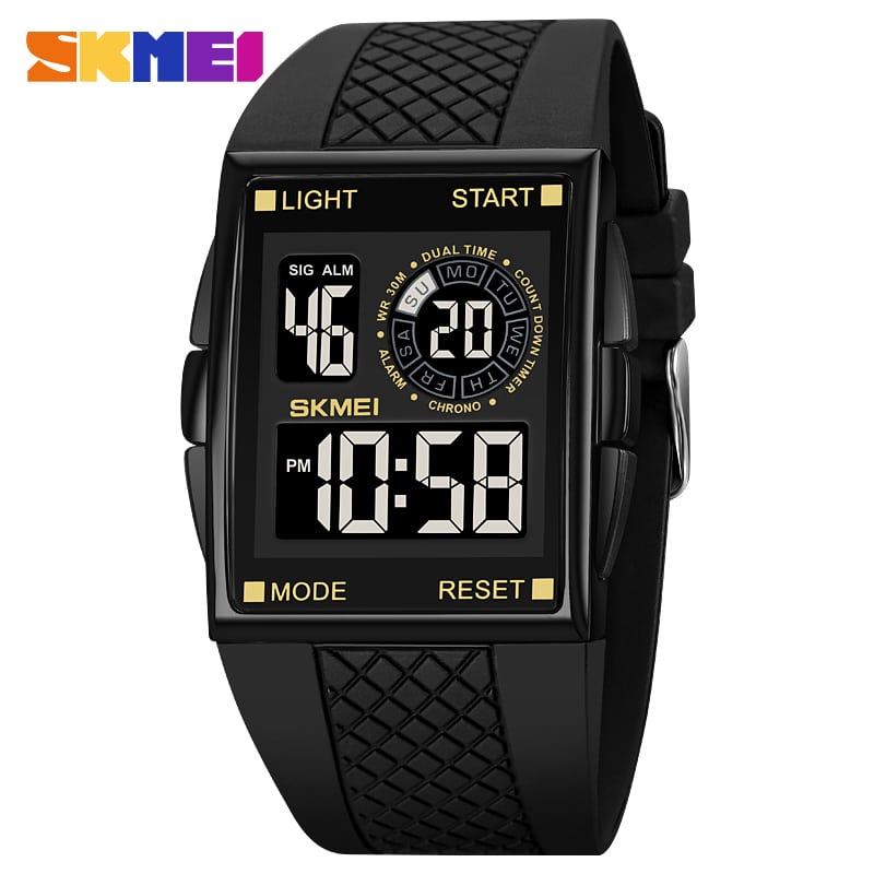 -Funciones: 2 Horas, Cronómetro, Alarma, Fecha, Semana, Luz LED, Formato de hora 12/24 hrs, Temporizador