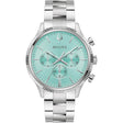 **Descripción breve:** Reloj Bulova 96A323 con movimiento de cuarzo japonés, caja y brazalete de acero inoxidable plateado, esfera turquesa con calendario de día y cronógrafo. Resistencia al agua de 30 metros.