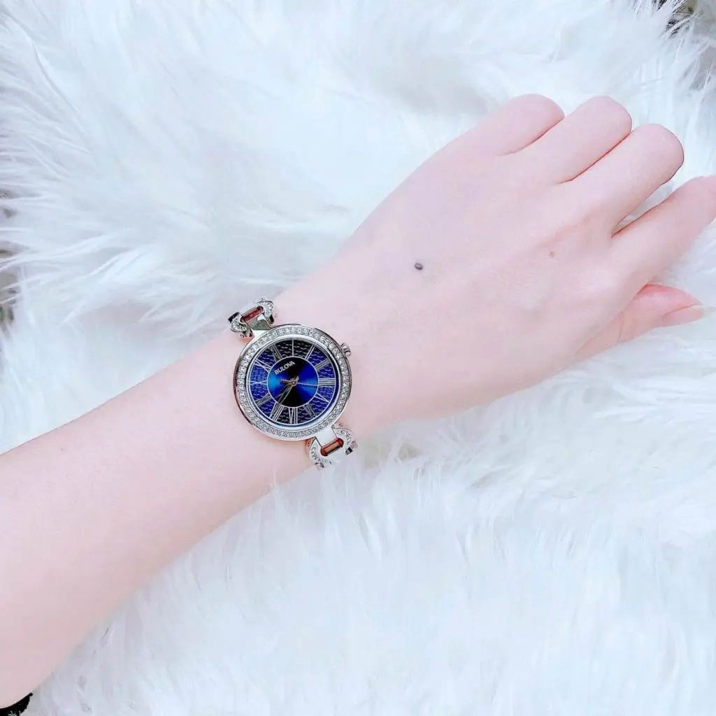 • Índices con cristales y números romanos en 3, 6, 9 y 12