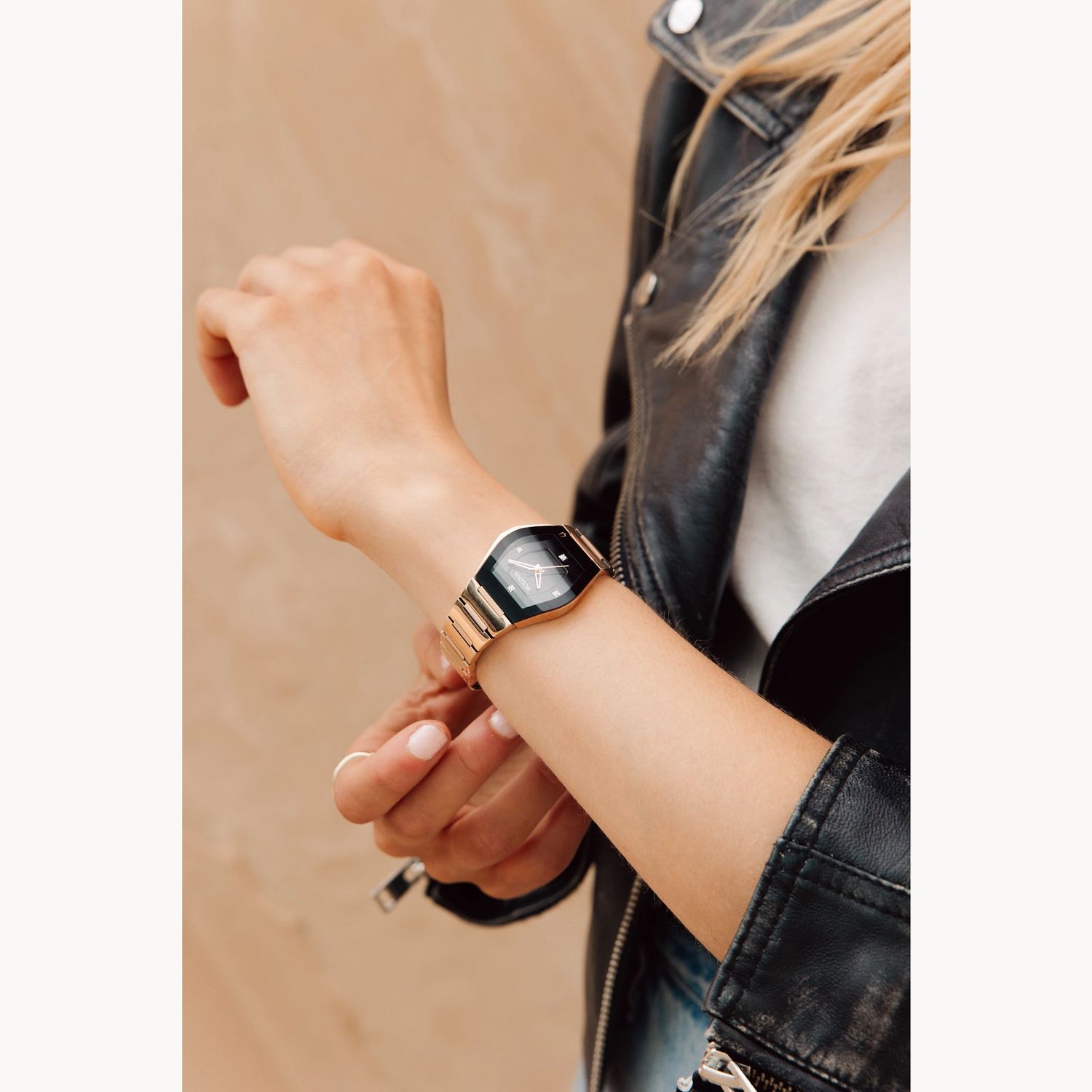 - Material de la caja: Acero inoxidable con acabado en oro rosa