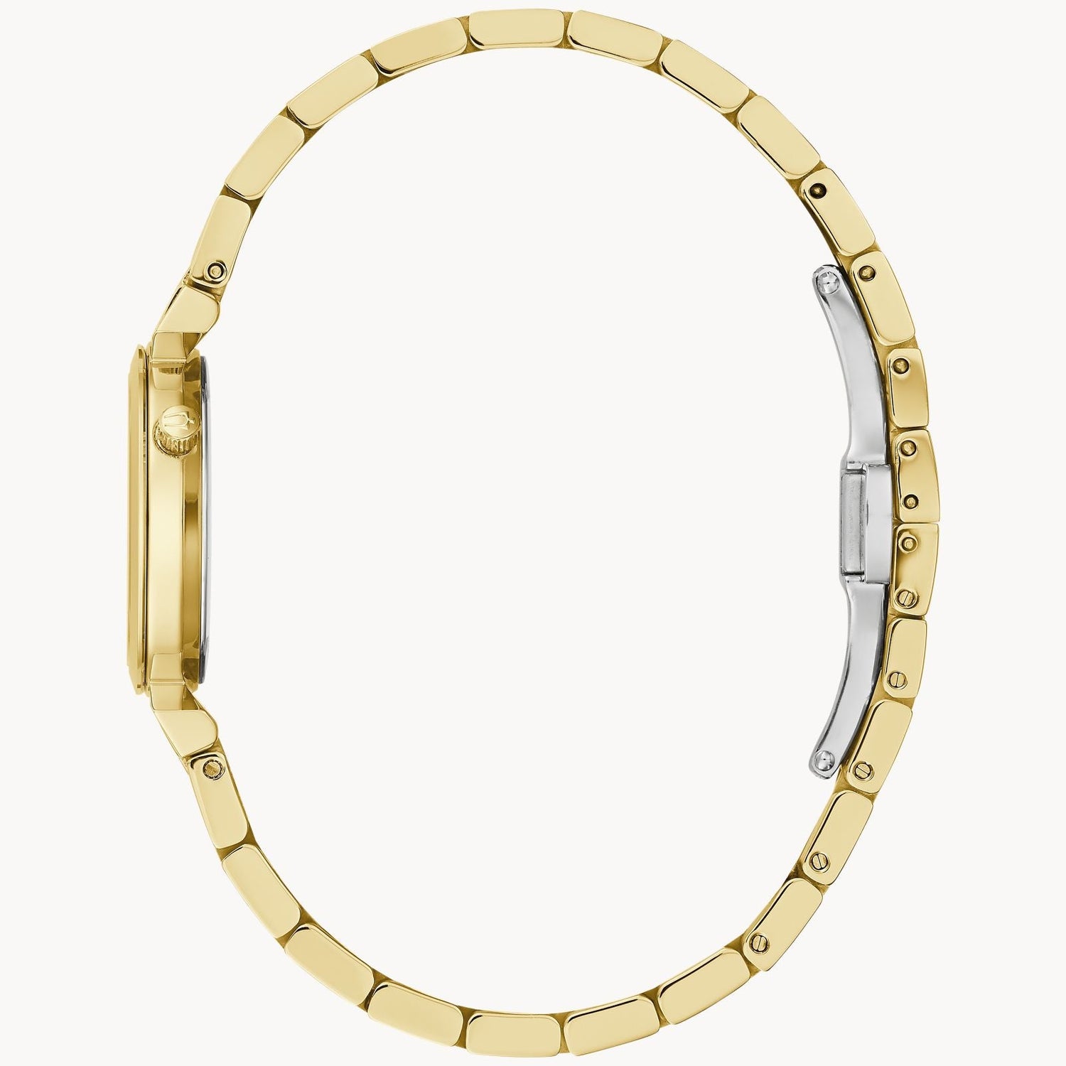 • Material de la caja: Acero inoxidable con acabado en tono dorado