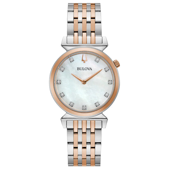 - Material de la caja: Acero inoxidable bicolor (tono plata y oro rosa)