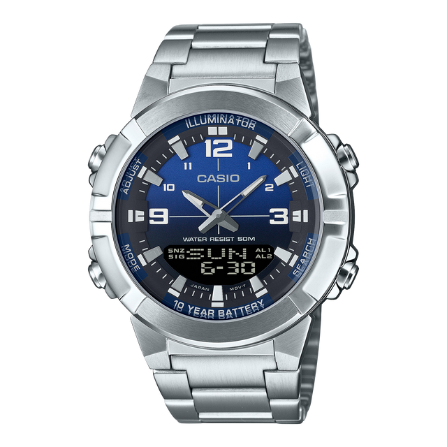 AMW-870DA-2A1V Casio Reloj doble hora pulsera de metal para hombre
